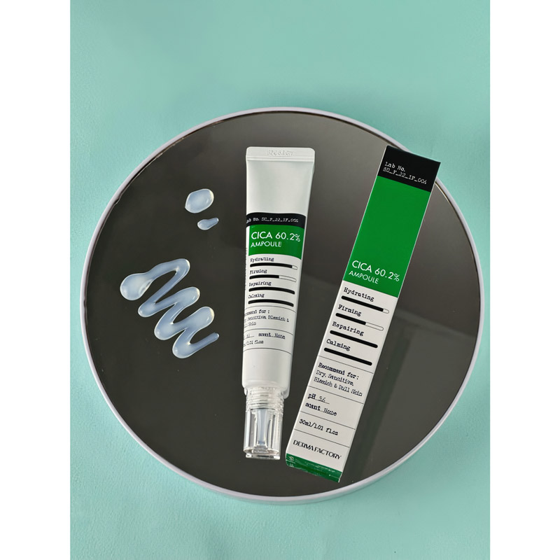 Ампула для лица с экстрактом центеллы Derma Factory Cica 60.2 Ampoule глубоко увлажняет и смягчает кожу, устраняет сухость и обезвоженность, препятствует шелушениям. Оказывает интенсивное успокаивающее действие, устраняет покраснения и раздражения.