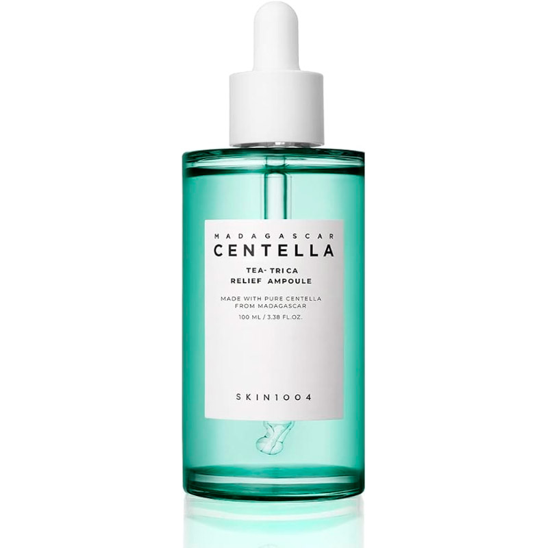 Успокаивающая ампула для проблемной кожи SKIN1004 Madagascar Centella Tea-Trica Relief Ampoule помогает в борьбе с акне, смягчает кожу, уменьшает покраснение и раздражение, отлично ухаживает за проблемной кожей. Нормализует чрезмерную выработку кожного сала, устраняет жирный блеск, успокаивает, освежает и предотвращает появление чёрных точек.