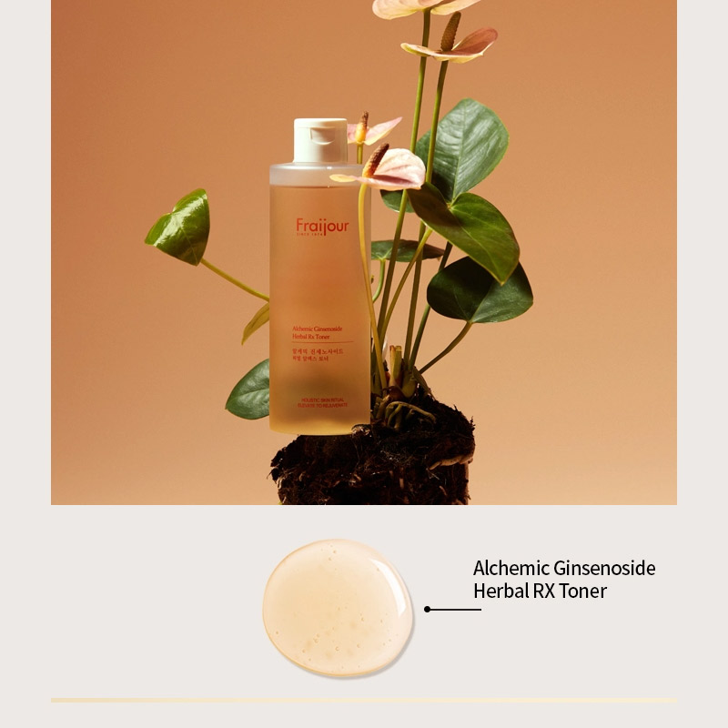 Антивозрастной тонер с женьшенем и пептидами EVAS Fraijour Alchemic Ginsenoside Herbal Rx Toner восстанавливает гидролипидный баланс после умывания и готовит к нанесению последующего ухода. Освежает и увлажняет, предотвращает сухость и стянутость, а также оказывает омолаживающее действие, повышая упругость и эластичность кожи, успокаивает раздражение и уменьшает чувствительность к внешним факторам.