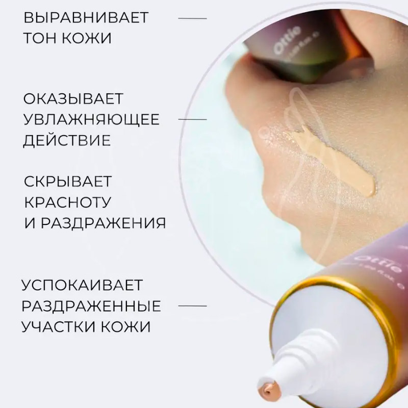 ВB-крем Ottie Calming Twinkle BB с отличной адаптацией под любой оттенок кожи дарит неповторимый комфорт и матовый финиш с легким сиянием. Средство маскирует несовершенства, в том числе неровности тона и рельефа, легко распределяется и не ощущается на коже в течение дня. Успокаивающие компоненты в лице центеллы азиатской, портулака и алоэ вера снимают раздражение и красноту, предотвращают воспалительные процессы и обезвоживание. BB-крем отлично фиксируется и не скатывается даже при жаркой погоде, а также не создает чувства «маски».