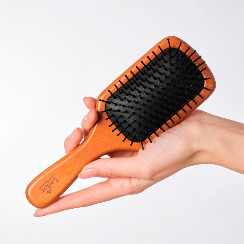 Деревянная щетка для волос Lador Wood Paddle Brush очень бережно расчесывает и распутывает волосы, приятно массирует кожу головы, улучшает кровообращение и помогает снять накопившийся стресс.