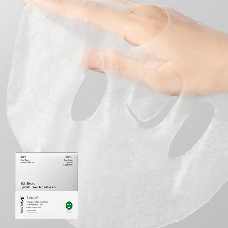 Двухфазная тканевая маска с микроиглами JMsolution Skin Boost Spicule Two Step Mask интенсивно увлажняет, предотвращает обезвоженность и стянутость, выравнивает тон и возвращает лицу здоровое сияние. Бустер-сыворотки в наборе способствует глубокому проникновению активов.