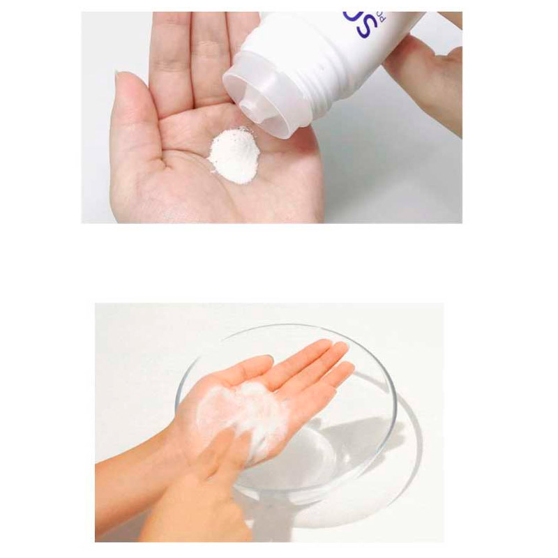 Возьмите небольшое количество пудры и смешайте с несколькими каплями воды до образования пены. Мягко нанесите пенку на лицо, смойте теплой водой.