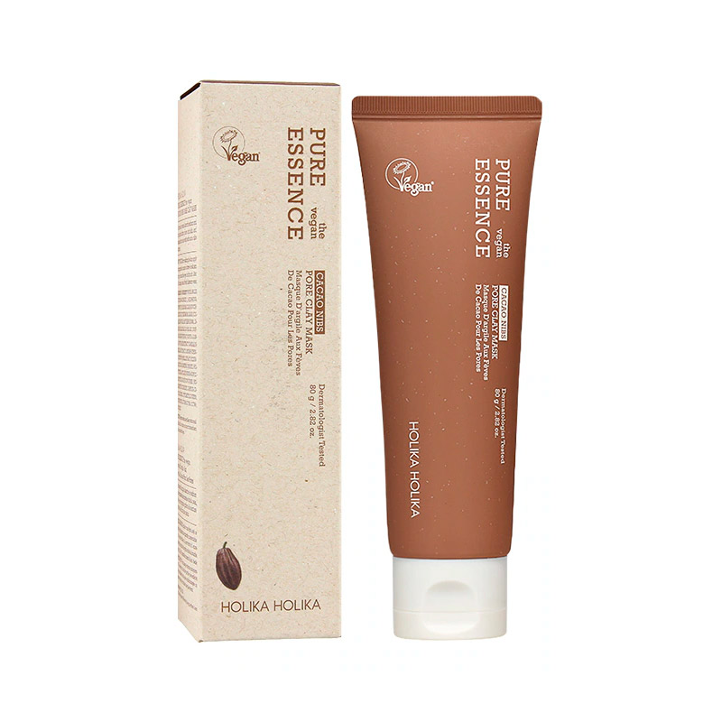 Глиняная маска с какао Holika Holika Pure Essence The Vegan Cacao Nibs Pore Clay Mask очищает и матирует кожу, сужает поры, регулирует гидролипидный баланс эпидермиса. Питает, оказывает смягчающее и антиоксидантное действие.