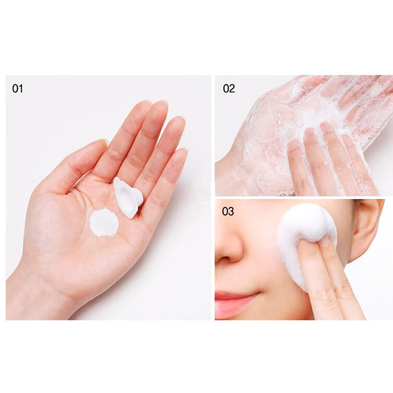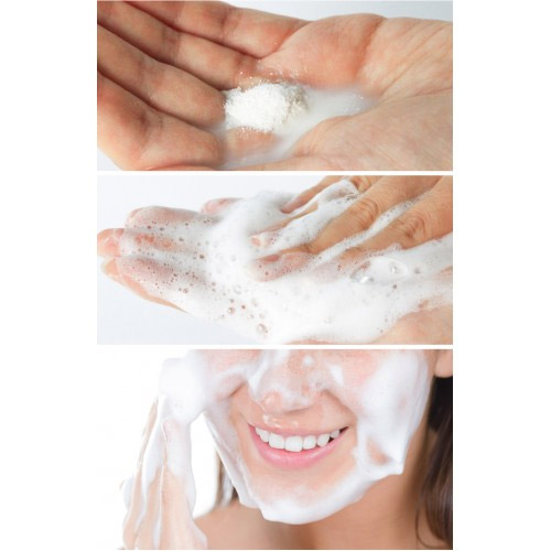 На влажную ладонь насыпать немного пудры, намочить водой и взбить пену. Нанести средство на лицо мягкими круговыми движениями, помассировать, затем смыть водой.