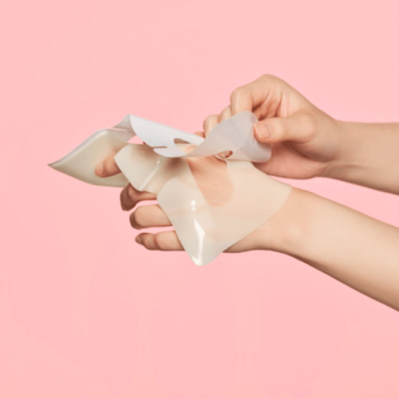 Основа маски выполнения из гидролизованного коллагена, который плотно прилегает к коже, повторяет контуры лица и надёжно фиксируется. Во время использования продукта создаётся своеобразный парниковый эффект, позволяющим всем активам проникнуть как можно глубже в эпидермис, а коллагеновое лекало маски становится прозрачным.