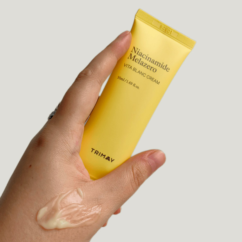 Витаминный крем для борьбы с пигментацией Trimay Niacinamide Melazero Vita Blanc Cream обладает успокаивающим, увлажняющим и укрепляющим действием, выравнивает тон и улучшает цвет лица, отлично тонизирует и дарит здоровое сияние. Направлен на эффективную работу с пигментными и застойными пятнами, подавляет выработку меланина. Дополнительно работает на предотвращение появления пигментации и пост-акне.