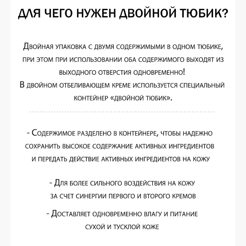 Перед использованием закройте крышку переверните положением вниз и несколько раз постучите по ней ладонью. Нажимайте на тубу в нижней части, ближе к носику, чтобы двойной состав дозировался равномерно. Нанесите крем на чистую кожу лица легкими похлопывающими движениями подушечек пальцев.