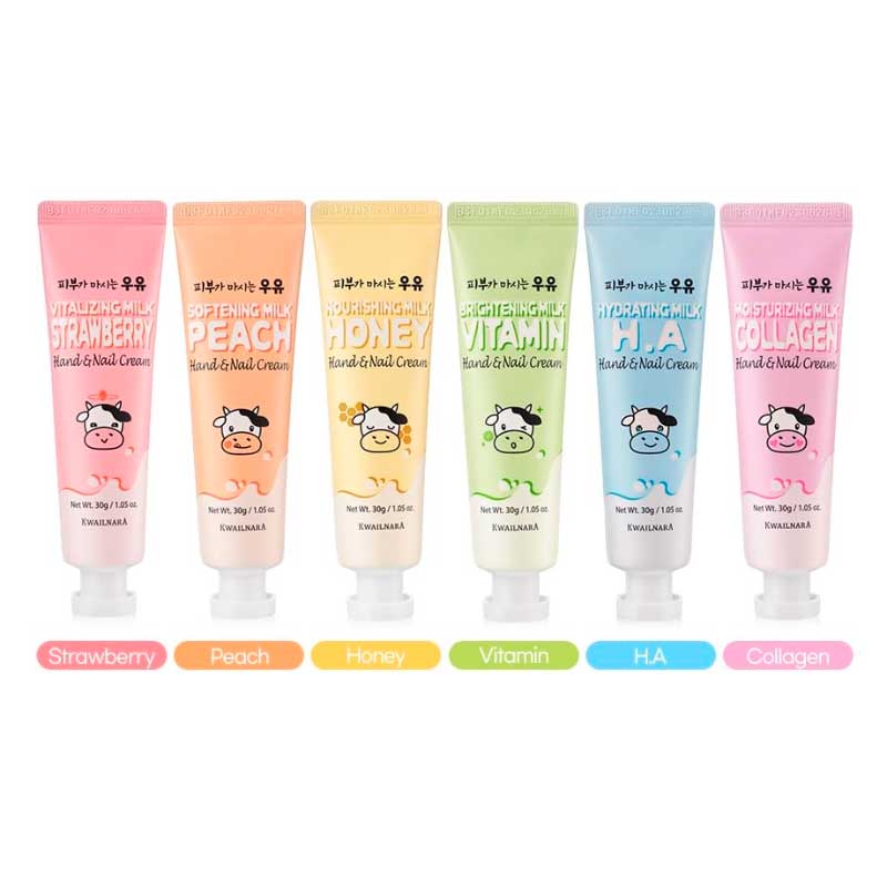 - Крем для рук витаминный Kwailnara Brightening Milk Vitamin Hand Nail Cream освежает кожу, выравнивает тон, повышает ее защитные функции. Витамины в составе оказывают мощную антиоксидантную поддержку, замедляют возрастные процессы, делают кожу рук сияющей и ухоженной.