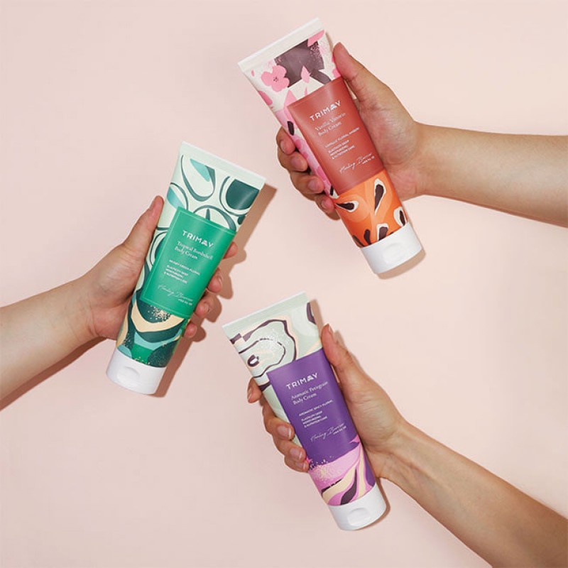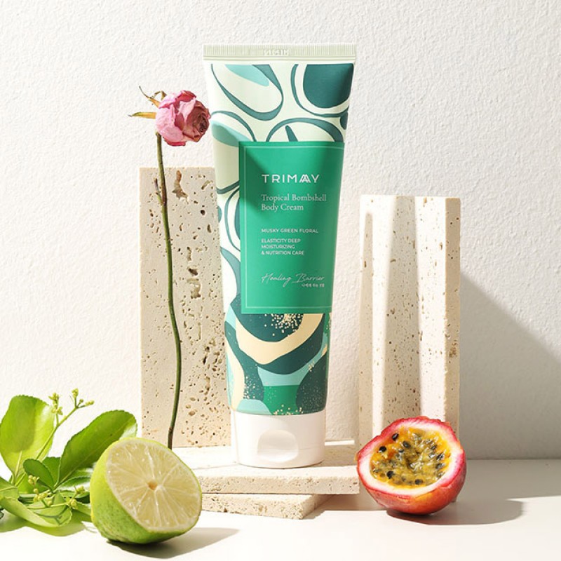 Крем для тела Trimay Healing Barrier Tropical Bombshell Body Cream интенсивно питает, увлажняет, смягчает и разглаживает, устраняет сухость и шелушение, успокаивает и восстанавливает, оставляя на коже изысканный аромат. Крем с охлаждающим ароматом цитрусов, бергамота и ананаса плавно переходит в сладкие тропические ноты маракуйи, жасмина, фрезии и ландыша, окутанных тёплыми древесными нотами и ароматом мускуса, обрамлённым сладкой карамельной вуалью.