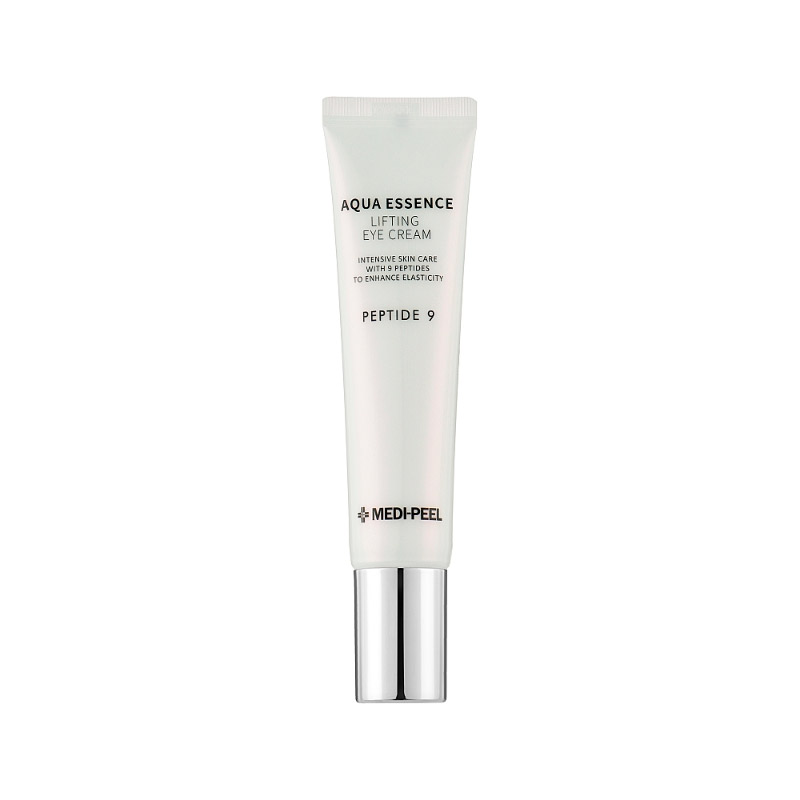 Крем для век с эффектом лифтинга Medi-Peel Peptide 9 Aqua Essence Lifting Eye Cream интенсивно увлажняет, устраняет сухость и способствует уплотнению тонкой кожи век, помогает устранить тёмные круги и тусклость. Повышает эластичность и упругость кожи, обладает мощнейшим восстанавливающим и обновляющим действием, блокирует разрушающее действие свободных радикалов, выводит токсины и замедляет процессы старения.