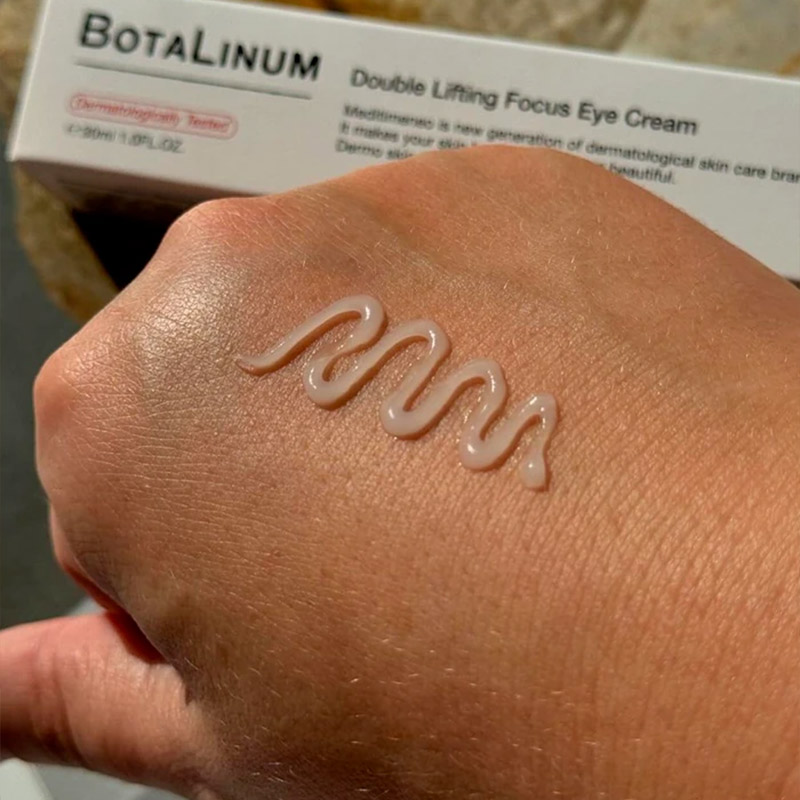 Крем для век с эффектом ботокса Meditime Botalinum Double Lifting Focus Eye Cream разглаживает кожные заломы и сокращает глубину мимических морщин. Питает и уплотняет тонкую кожу в области вокруг глаз, укрепляет и восстанавливает липидный барьер. Деликатно осветляет тёмные круги под глазами, активизирует синтез коллагеновых волокон и поддерживает необходимый уровень влаги в коже. Борется с дряблостью и гусиными лапками, обеспечивает антиоксидантную активность.