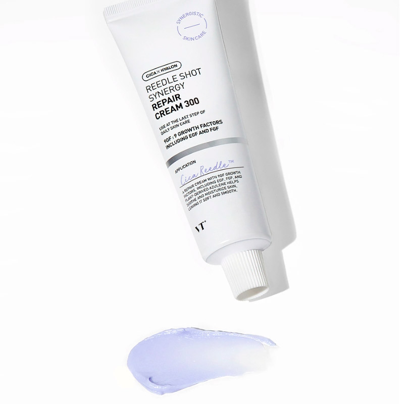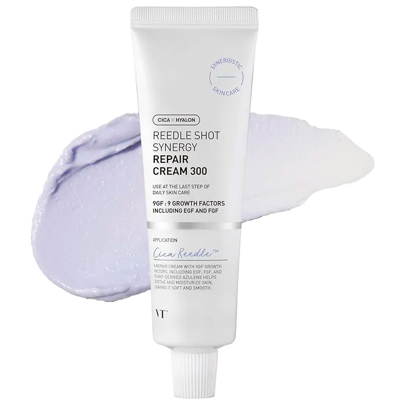 Крем VT Cosmetics Reedle Shot Synergy Repair Cream 300 запускает регенерацию повреждённой кожи после воздействия ретинола, кислот, бустер-сывороток с микроиглами и других активов, которые могут вызвать раздражение. Крем увлажняет и питает, смягчает огрубевшие и обветренные участки. Избавляет от шелушения и чувства стянутости, успокаивает воспаление и покраснение.