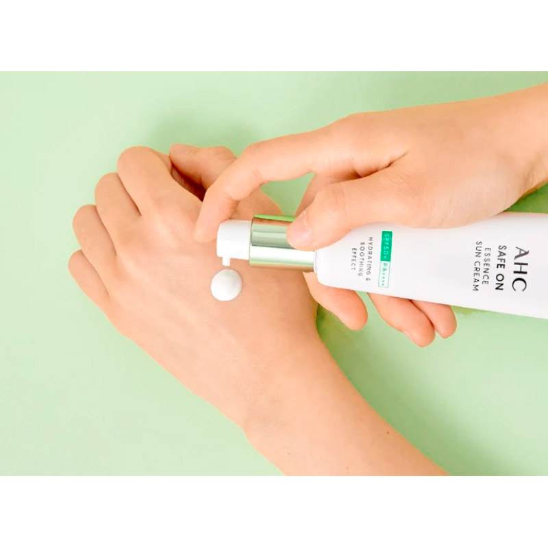 Крем солнцезащитный с экстрактом центеллы AHC Safe On Essence Sun Cream SPF50+ PA++++ создает на коже барьер, защищающий ее от ультрафиолетового излучения, увлажняет и успокаивает раздраженную и воспаленную кожу. Средство обладает легкой, невесомой текстурой и впитывается за считанные секунды, не оставляя липкости, жирности или стянутости.