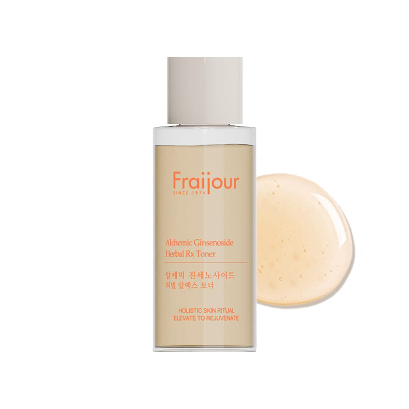 Антивозрастной тонер с женьшенем и пептидами EVAS Fraijour Alchemic Ginsenoside Herbal Rx Toner восстанавливает гидролипидный баланс после умывания и готовит к нанесению последующего ухода. Освежает и увлажняет, предотвращает сухость и стянутость, а также оказывает омолаживающее действие, повышая упругость и эластичность кожи, успокаивает раздражение и уменьшает чувствительность к внешним факторам.