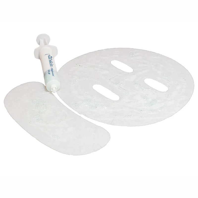 - 5 масок (салфетка) из специального полотна для лица и шеи. Салфетка и гель Carboxy, наносимый на лицо, был разработан для получения эффекта работы компонентов в паре. Это безопасная и удобная технологическая маска, которая вводит углекислый газ глубоко в кожу путем реакции геля и маски. Синий гель + лист маски = двуокись углерода.