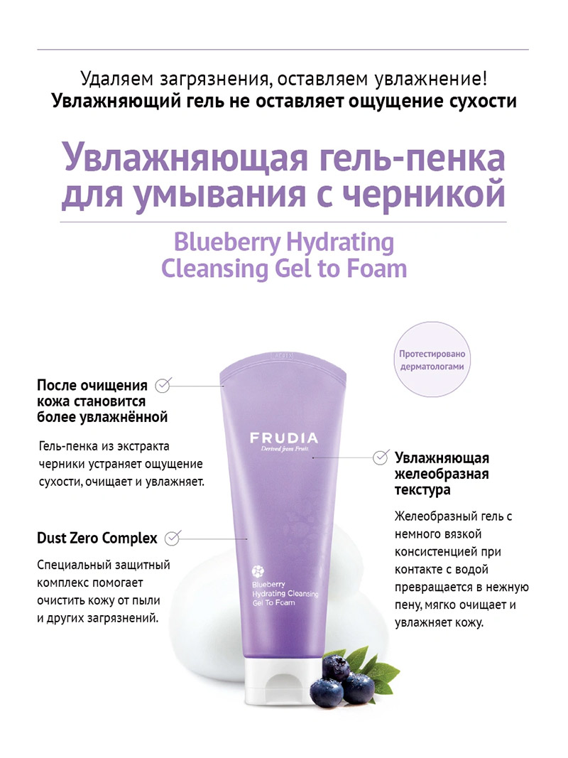 Увлажняющая пенка для умывания FRUDIA Blueberry Hydrating Cleansing Gel To Foam
