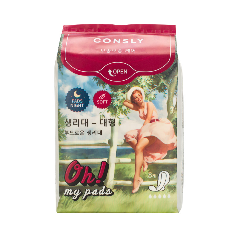 Ультратонкие ночные прокладки с крылышками Consly Oh! My Pads обеспечивают надежную защиту и комфорт во время менструации. Их уникальный дизайн делает их незаметными, сохраняя уверенность и безопасность.