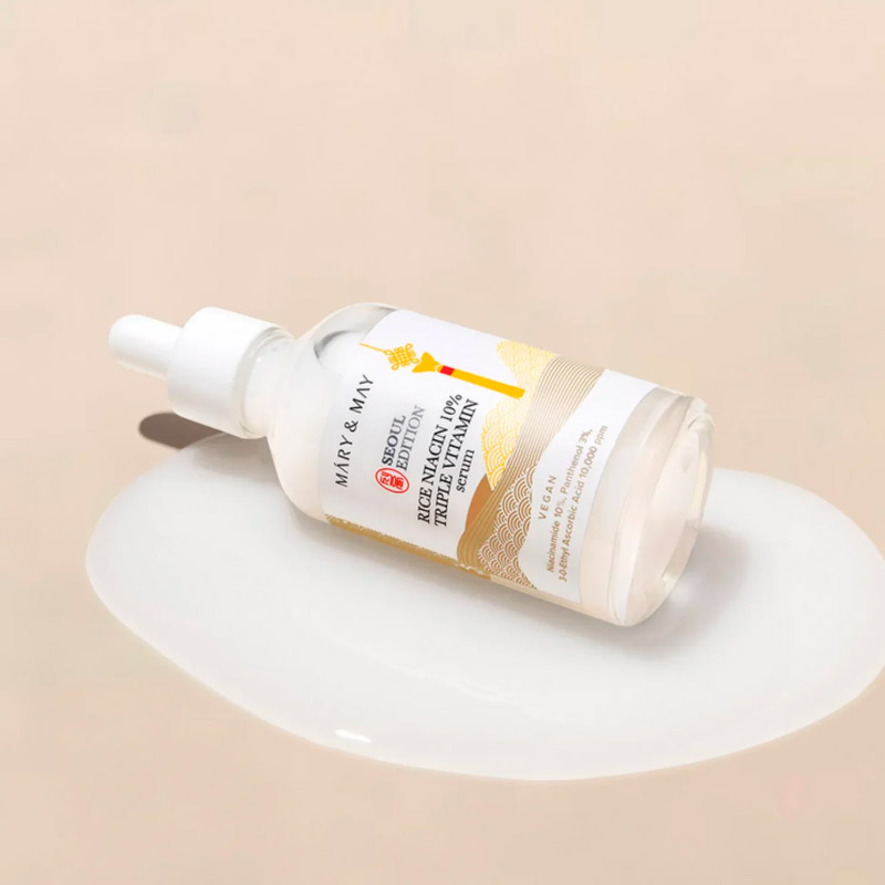 Осветляющая рисовая сыворотка для лица с ниацинамидом Mary May Rice Niacin 10 Triple Vitamin Serum борется с пигментными пятнами и следами от акне, интенсивно увлажняет и восстанавливает кожу, выравнивает тон и придает лицу естественное сияние. Она обогащает кожу витаминами, устраняет тусклость и улучшает общее состояние.