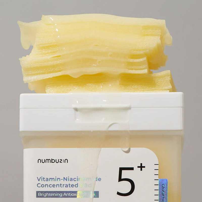 Осветляющие витаминные пэды с ниацинамидом numbuzin No.5 Vitamin-Niacinamide Concentrated Pad 70штОсветляющие витаминные пэды numbuzinNo.5 Vitamin-Niacinamide Concentrated Pad отбеливает гиперпигментацию, уменьшает следы от акне, веснушки и мелазму, выравнивает тон и устраняет тусклость. Сглаживают микрорельеф, деликатно отшелушивают роговой слой и очищают поры, оказывают мощное антиоксидантное действие и препятствуют меланогенезу — образованию и транспортировке пигмента меланина в верхние слои кожи.