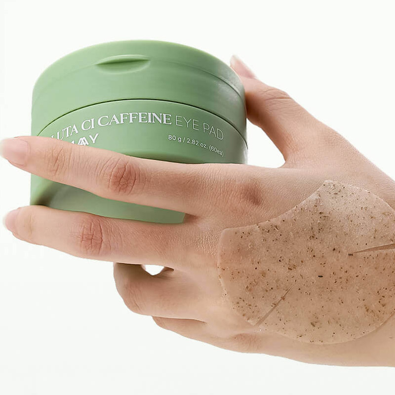 Пэды-патчи против отёков с кофеином Trimay Gluta Ci Caffeine Eye Pad успокаивают, увлажняют и смягчают кожу, снимают припухлость в области под глазами. Деликатно осветляют, выравнивают тон, придают естественное сияние. Трёхслойные пэды из лиоцелла содержат измельчённые листья центеллы, которые оказывают дополнительное успокаивающее действие. Подходят для утреннего ухода и для подготовки к макияжу. Не оставляют липкости, хорошо фиксируются и не сползают.