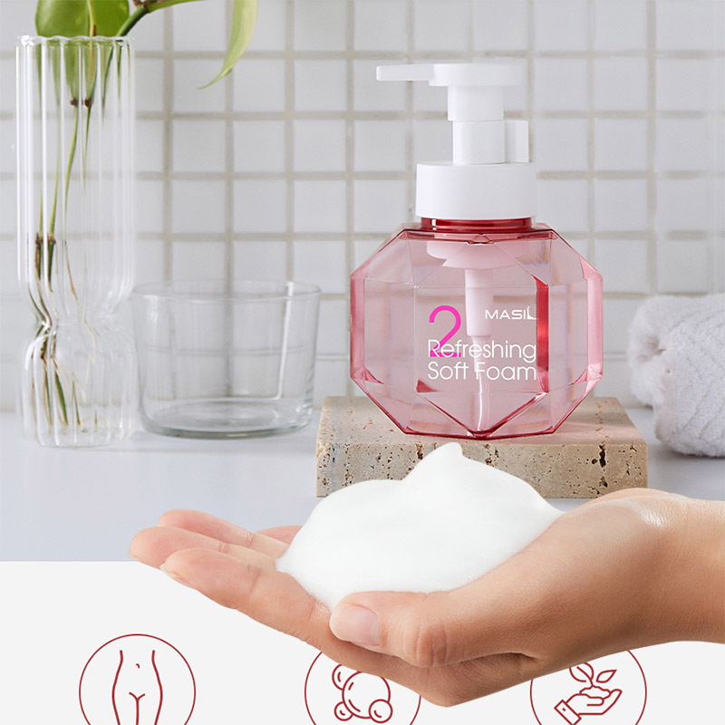 Пенка для интимной гигиены Masil 2 Refreshing Soft Foam бережно очищает кожу, успокаивая раздражения и устраняя сухость и неприятные ощущения. Средство деликатно ухаживает за нежной кожей, оказывает противомикробное действие, предупреждает появление неприятного запаха. Глубоко увлажняет, поддерживает естественный pH кожи, улучшает ее барьерные функции.