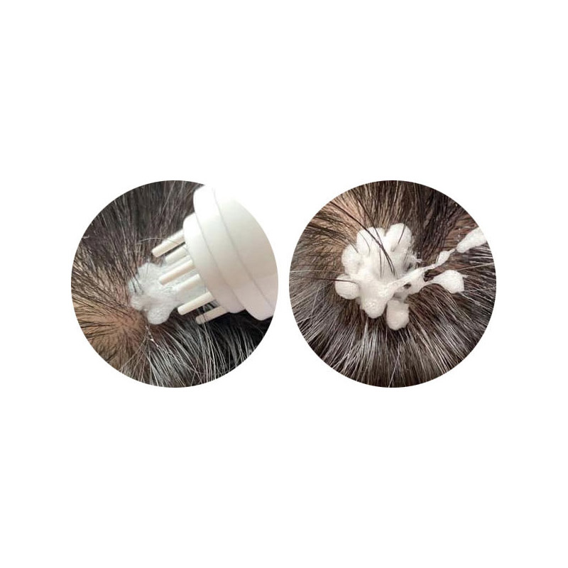 Средство образует густую пену, которую удобно распределять по коже головы при помощи специальной массажной насадки, которой оснащен флакон.