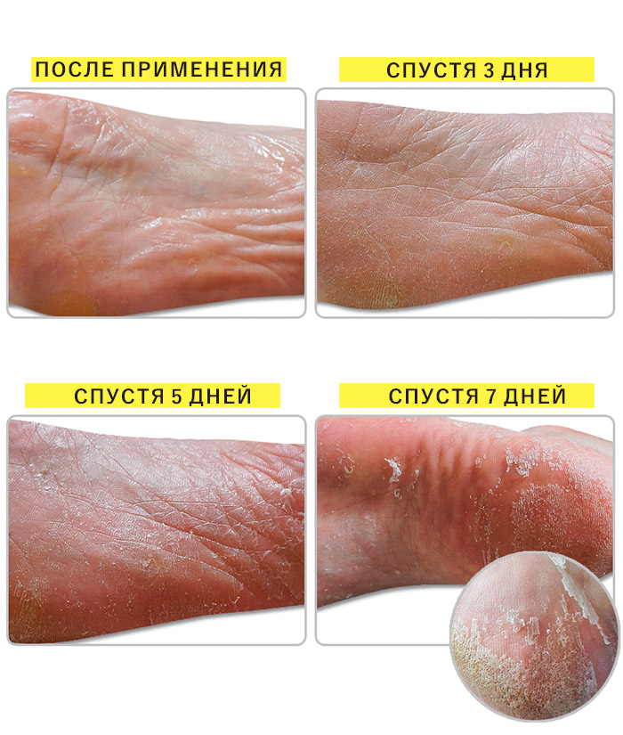 5. На 5-7 день вы увидите, как кожа обновляется, хлопьями отделяясь от стоп. Не стоит пугаться, так и должно быть.