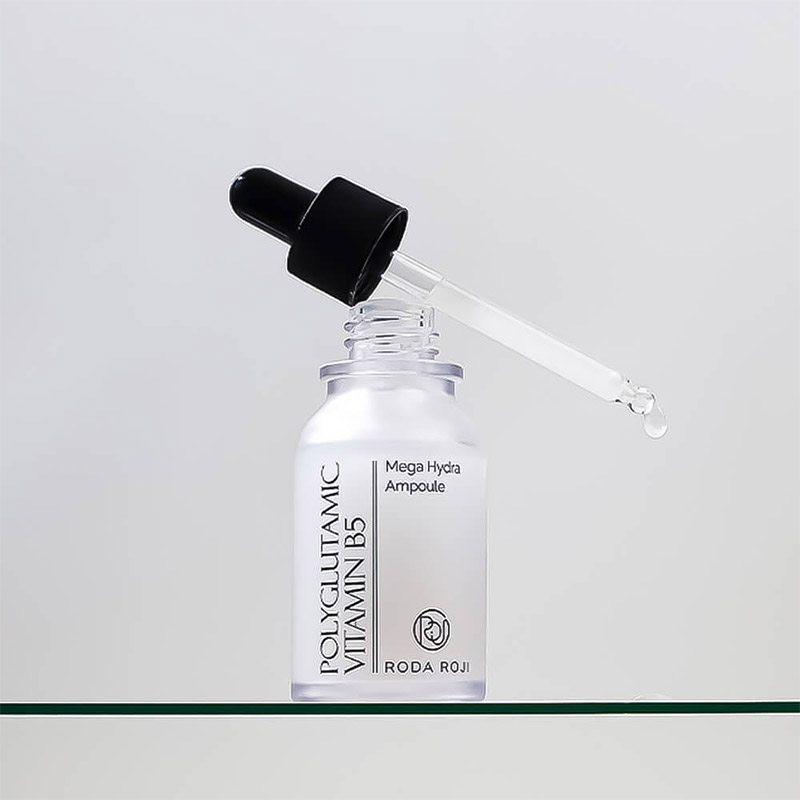 Сыворотка с полиглутаминовой кислотой и пантенолом RODA ROJI Polyglutamic Vitamin B5 Mega Hydra Ampoule увлажняет, устраняет шелушение и сухость, борется с обезвоженностью, смягчает и восстанавливает гладкую и ровную текстуру. Ускоряет заживление и укрепляет гидролипидную мантию, уменьшает видимость морщин, вызванных сухостью, и готовит кожу к макияжу. Имеет нежную молочную текстуру.