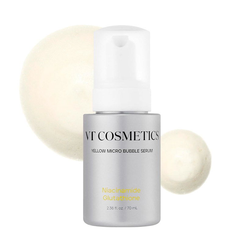 Пузырьковая сыворотка VT Cosmetics Niacinamide Glutathione Yellow Micro Bubble Serum осветляет постакне и пигментные пятна, выравнивает тон и борется с тусклостью, возвращает лицу здоровое сияние. Восстанавливает защитный барьер кожи, делая её устойчивой к внешним раздражающим факторам. Обеспечивает высокую антиоксидантную защиту и замедляет старение.