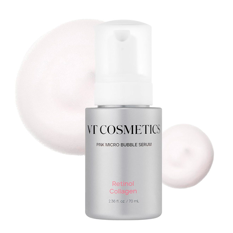 Пузырьковая сыворотка VT Cosmetics Retinol Collagen Pink Micro Bubble Serum обладает антивозрастным действием, способствует обновлению клеток и поддерживает эластичность кожи. Восполняет дефицит влаги, препятствует обезвоженности, возвращает лицу здоровое сияние. Обладает высокой антиоксидантной активностью и защищает от фотостарения, предотвращает птоз и образование заломов.