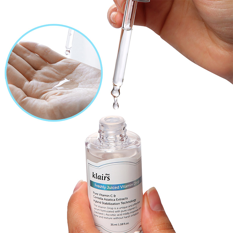 Сыворотка с витамином С для сияния кожи Dear, Klairs Freshly Juiced Vitamin Drop борется с тусклостью, выравнивает тон и делает цвет лица более здоровым, подсвечивая изнутри. Успокаивает воспаления, снимает раздражения, а также борется со всеми признаками возрастных изменений и разглаживает морщины. Оказывает мощный антиоксидантный эффект, выводит токсины, устраняет пигментацию и постакне.