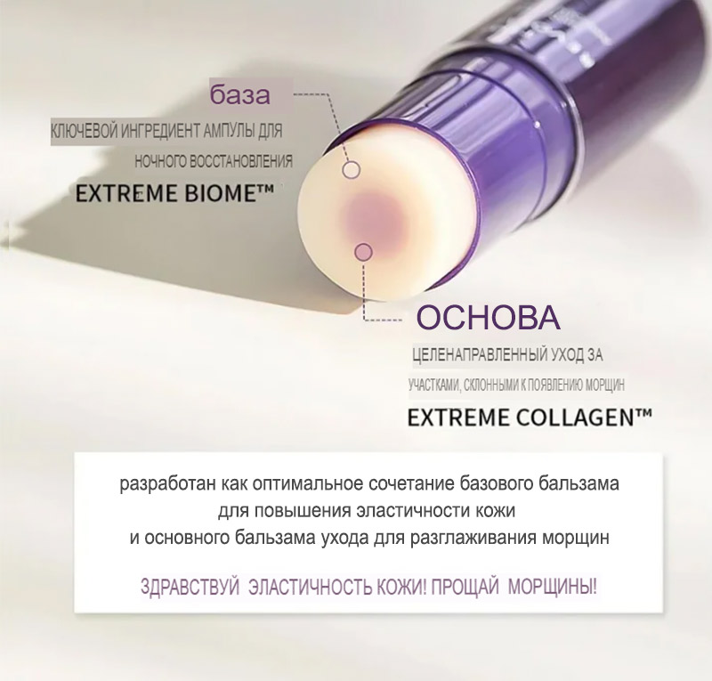 Популярная ампульная сыворотка теперь в виде стика! Двойной бальзам-стик это концентрированная формула питательной сыворотки, которая оказывает интенсивное действие по всем направлениям антивозрастного ухода: повышение упругости, эластичности, гладкости и тонуса. Выравнивает тон кожи и активизирует внутреннее сияние.