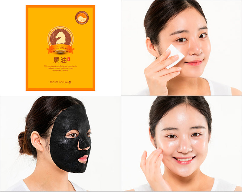 Маска-салфетка содержит ферментированное конское масло с фермы в экологически чистом острове Чеджу.