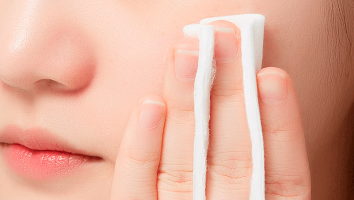 Смочите средством ватный диск и протереть им лицо. (Перед выходом на улицу обязательно нанесите солнцезащитный крем после использования бустера).