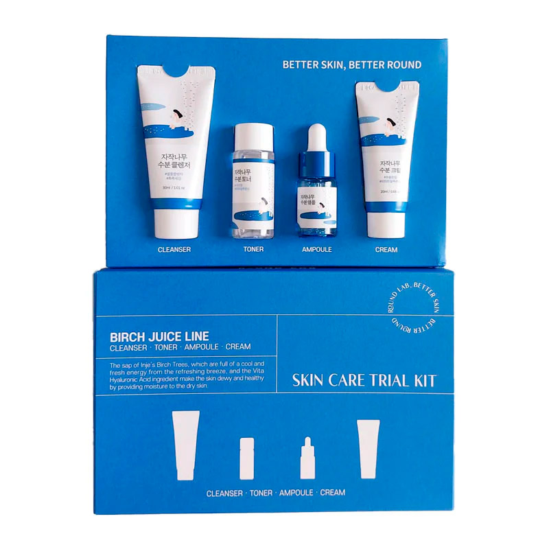 Travel-набор средств с берёзовым соком Round Lab Birch Juice Trial Kit — идеальный формат для знакомства с линией увлажняющих продуктов бренда. Их действие направлено на восполнение дефицита влаги и оптимизацию защитных функций кожи. Средства поддерживают естественный pH-баланс и целостность гидролипидной мантии, снижают чувствительность и реактивность.