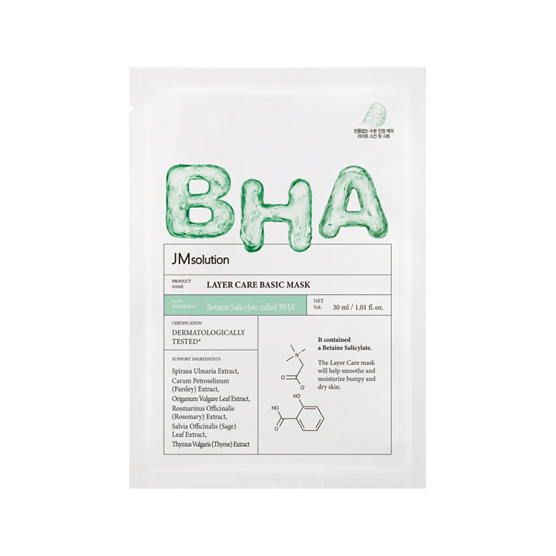 Ультратонкая тканевая маска с BHA-кислотой для проблемной кожи JMsolution Layer Care Basic Mask обладает выраженным противовоспалительным действием, способствует заживлению акне и предупреждает появление постакне. Обладает мощным себорегулирующим действием, нормализует работу сальных желёз и снижает жирность кожи в течение дня.