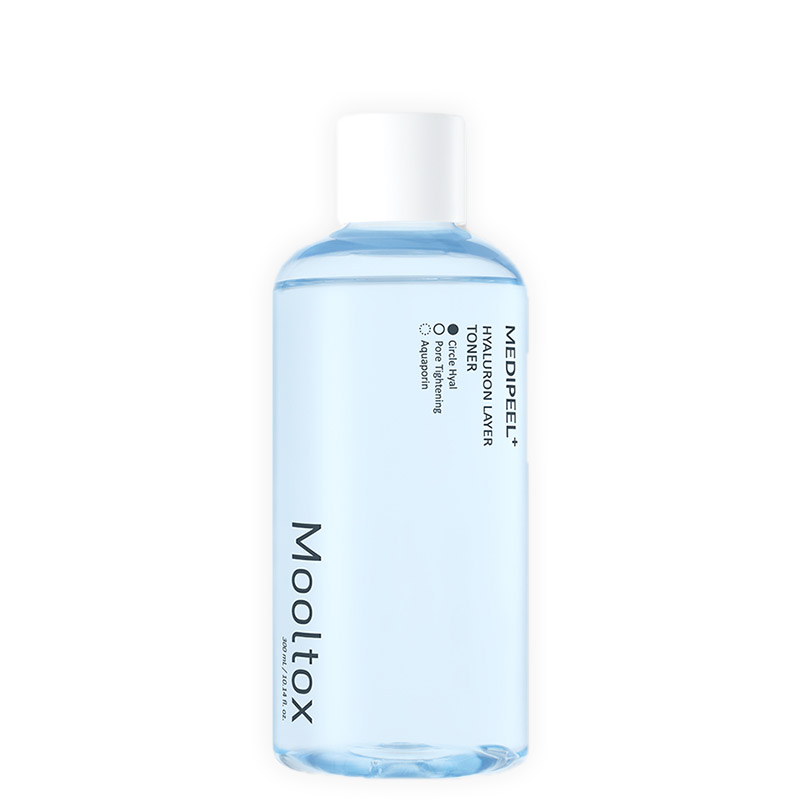 Ультраувлажняющий тоник от сухости MEDIPEEL Hyaluronic Acid Layer Mooltox Toner моментально освежает при нанесении, восполняет недостаток влаги и избавляет от обезвоженности, а также повышает эластичность и упругость кожи. Средство разглаживает рельеф, сужает расширенные поры, смягчает шелушение и обветренные участки, успокаивает, удерживает влагу в клетках. Способствует уплотнению тканей, замедляет старение. Отлично готовит кожу к макияжу.