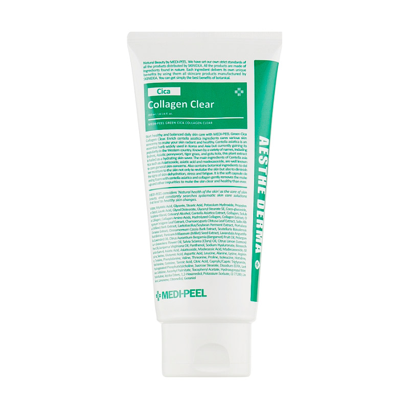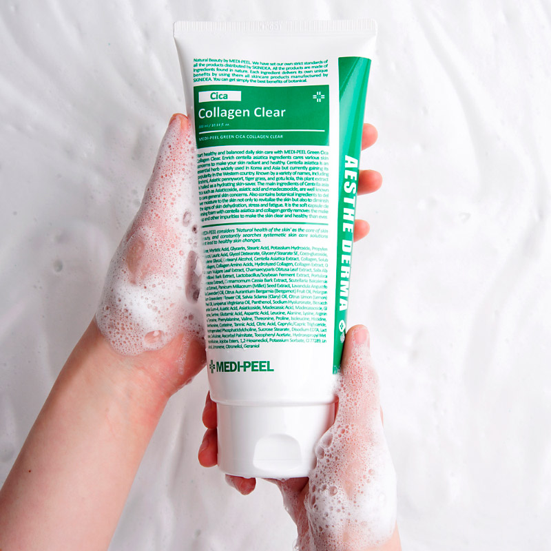 Глубокоочищающая и успокаивающая пенка Medi-Peel Green Cica Collagen Clear деликатно очищает чувствительную кожу, не вызывая чувства стянутости и сухости. Пенка помогает решить проблемы с излишним выделением себума и забитыми порами, снижает чувствительность кожи, отшелушивает омертвевшие клетки и выравнивает текстуру. Благодаря оптимальному pH-балансу средство не оставляет ощущения сухости и стянутости, поддерживает естественный кислотно-щелочной баланс кожи.
