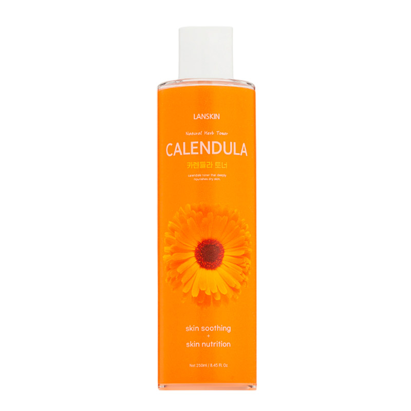 Успокаивающий тонер с экстрактом календулы LanSkin Calendula Natural Herb Toner глубоко питает кожу витаминами и жирными кислотами, успокаивает, способствует снятию раздражения, отшелушивает омертвевшие частички кожи, дарит коже ощущение чистоты и свежести
