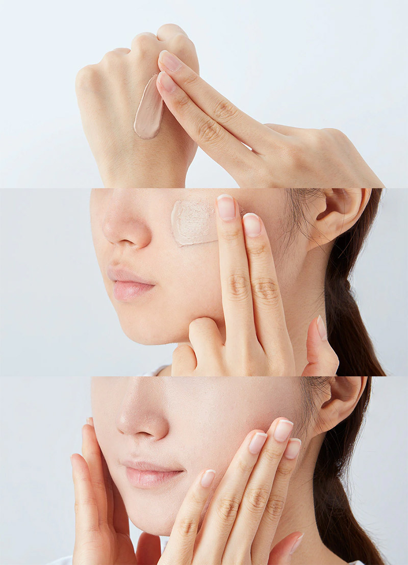 Нанесите немного крема на лицо и равномерно распределите легкими похлопывающими движениями для получения однородного тона.