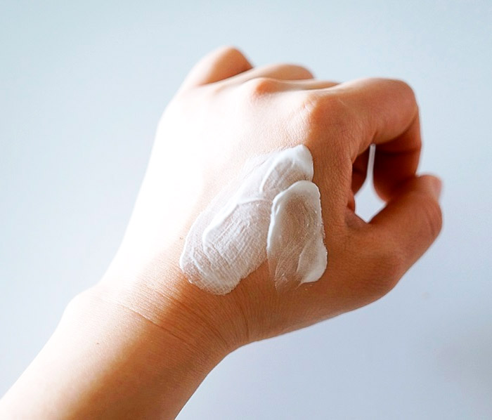 Нанесите небольшое количество крема на очищенную кожу лица и тела, дайте средству впитаться.