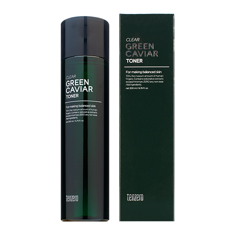 Выравнивающий тонер с экстрактом морского винограда TENZERO Green Caviar Clear Toner интенсивно тонизирует и обновляет кожу, выравнивает рельеф, разглаживает морщины, сужает поры и улучшает цвет лица, а также восстанавливает ее защитный барьер после умывания.