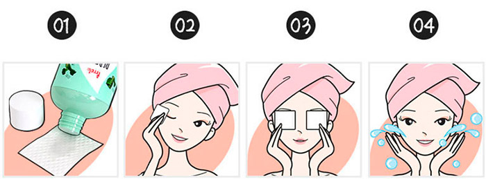 Смочите средством ватный диск и аккуратно очистите кожу лица. Для снятия макияжа с глаз и губ приложите смоченный ватный диск на несколько секунд, затем мягко удалите макияж.